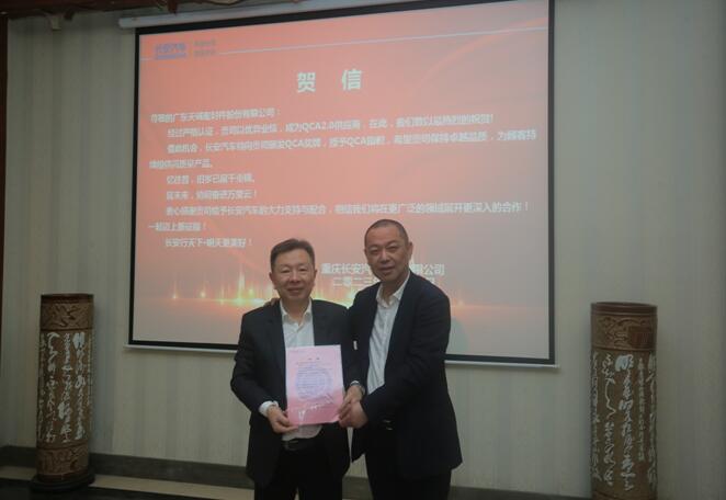 上午9:30交流會(huì)正式開始,會(huì)上,長(zhǎng)安汽車總工程師王波先生向天誠(chéng)公司頒發(fā)了QCA賀信并對(duì)天誠(chéng)公司發(fā)展表示肯定與勉勵(lì)。